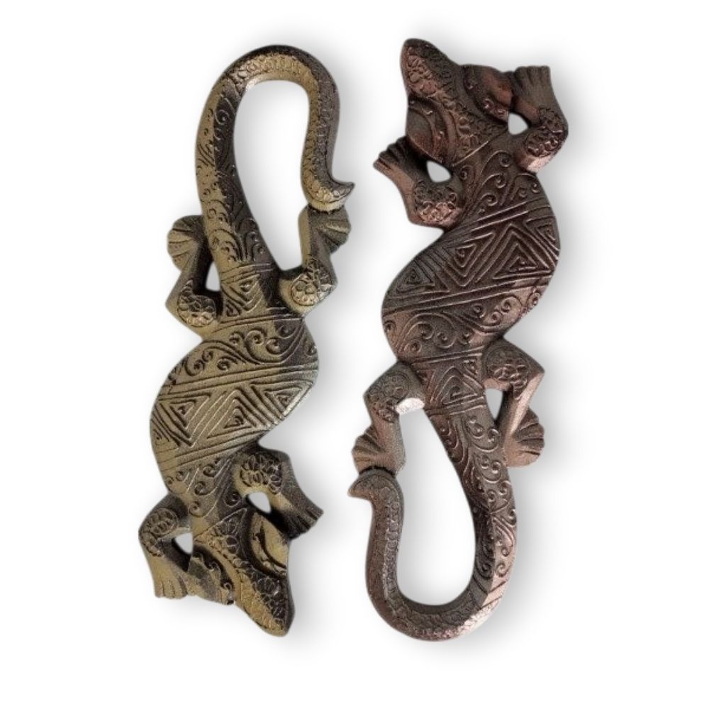 Esta pieza decorativa representa a la lagartija, símbolo ancestral de renovación, adaptabilidad y protección. Asociada a la capacidad de regenerarse y enfrentar los cambios con ligereza, la lagartija es considerada en muchas culturas un guardiana del hogar y la energía. Ideal para colgar en espacios interiores, su presencia invita a la transformación, la intuición y el movimiento consciente. Una pieza única para aportar fuerza sutil y estilo a cualquier ambiente.