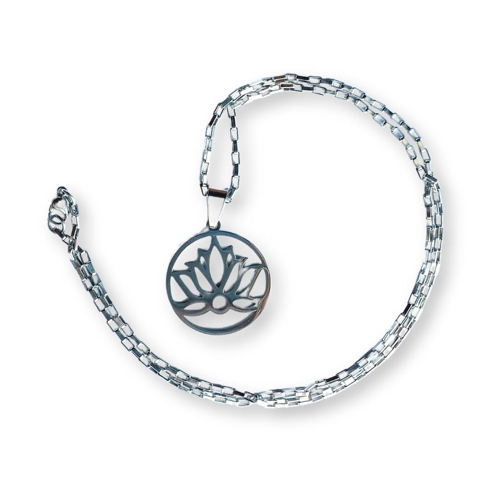 Dije de 2,5cm en acero quirúrgico. Incluye cadena también en acero quirúrgico.