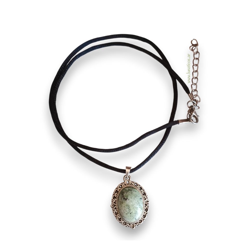 Dije de Dioptasa sobre base camafeo de fundición 2,5 cm con cordón de seda negro (50 cm)